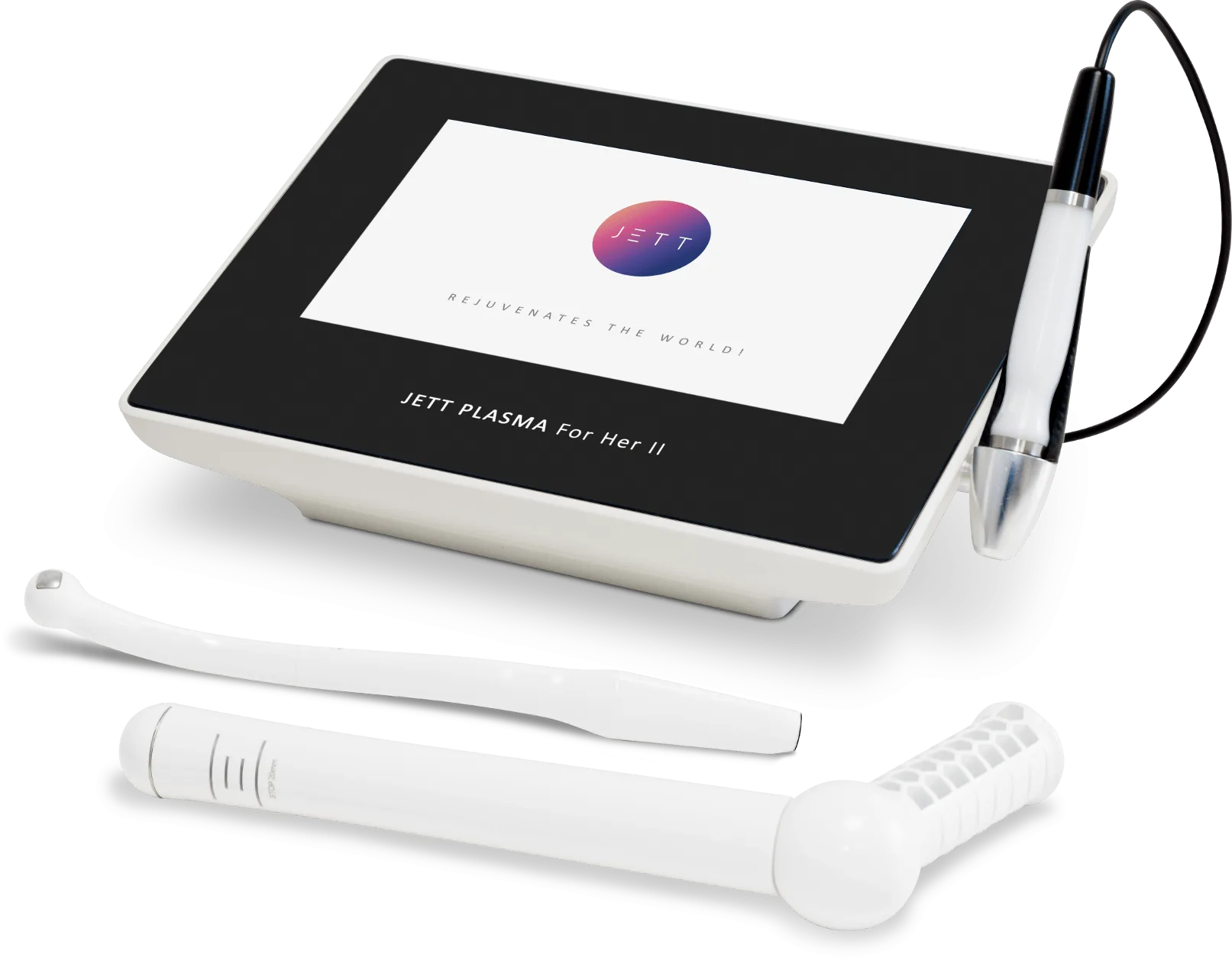 În cabinetul nostru dispunem de aparatul JETT PLASMA FOR HER II, singurul dispozitiv pe bază de curent continuu, care determină depolarizarea membranei celulare, electroporarea reversibilă și încălzirea tisulară locală, fenomene care stau la baza creării fibrelor noi de colagen, ce formează rețeaua de susținere celulară. În urma procesului apare o structură fibroelastică puternică, astefel și rejuvenarea tisulară.